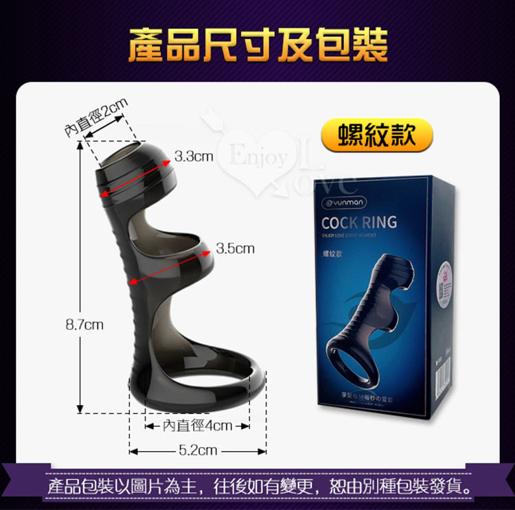 云曼 黑晶 彈性包龜延時加強刺激鎖精套環 (螺紋款/刺點款)
