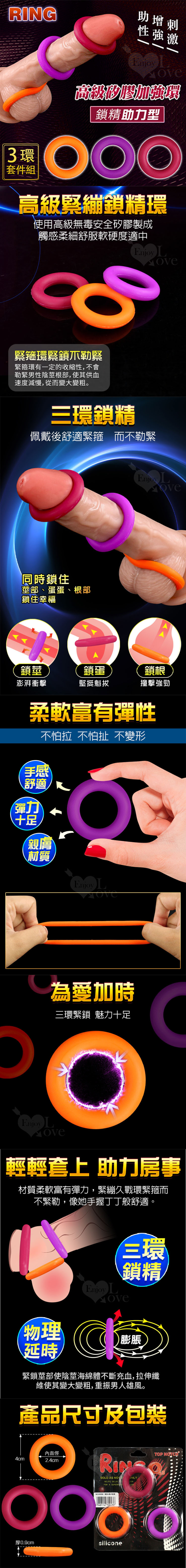 RING 高級緊繃鎖精助力型舒適矽膠加強環 (3入)
