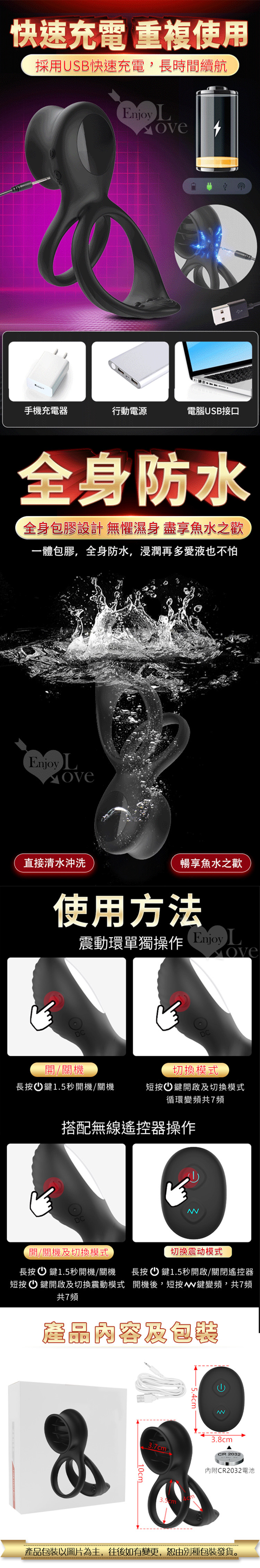 嗨舌 無線遙控7頻震動鎖精延時套環 男女共震