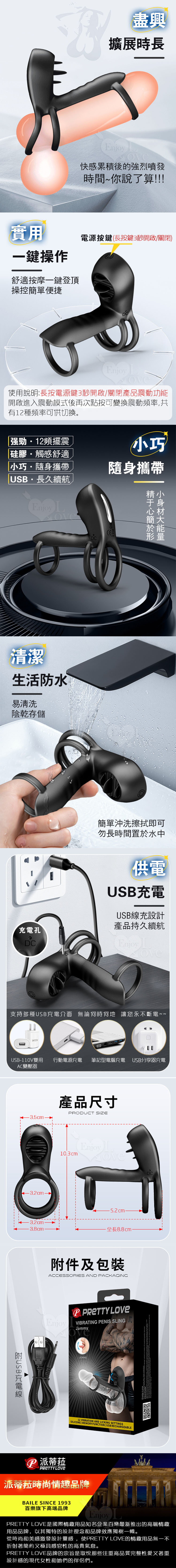 PRETTY LOVE Jammy 吉米 12頻軟舌擺震男女共震三環固鎖按摩震動鎖精套環