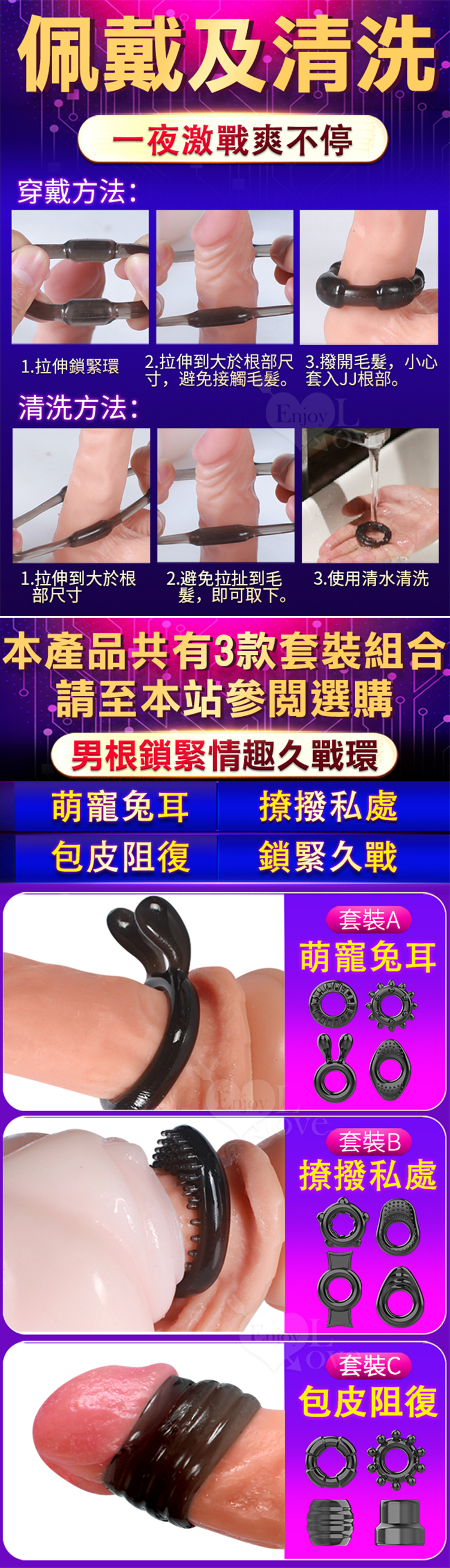 取悅 男根鎖緊情趣久戰環4件套裝組 (3款)