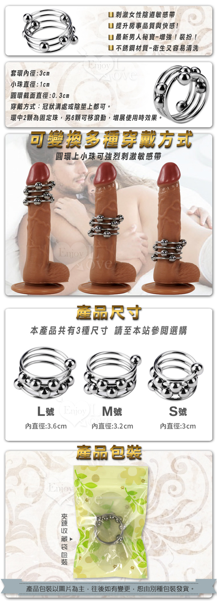 8入珠不銹鋼龜頭冠狀溝加強加粗環