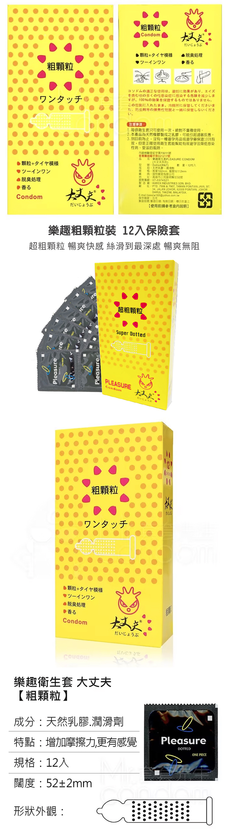 樂趣 大丈夫 粗顆粒保險套 12入