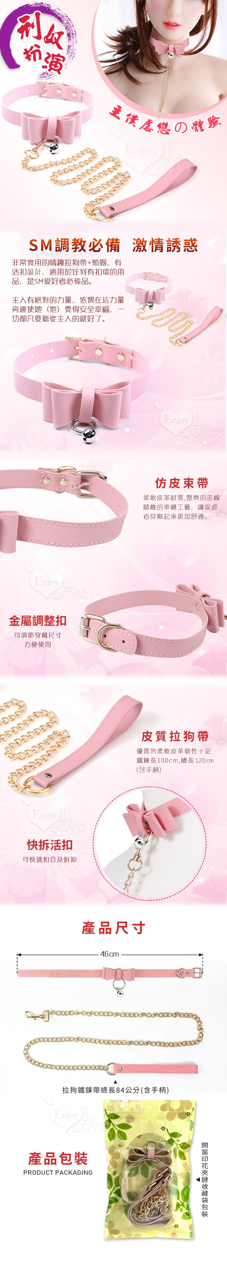 SM蝴蝶結鈴鐺項圈+牽引金屬鏈