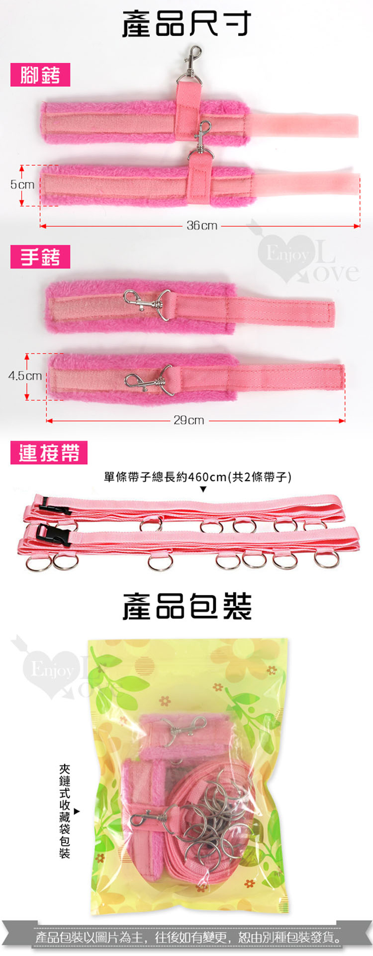 此款手腳束縛為加厚毛絨款,使用舒適柔軟,不管一般雙人或加大雙人都適用。
