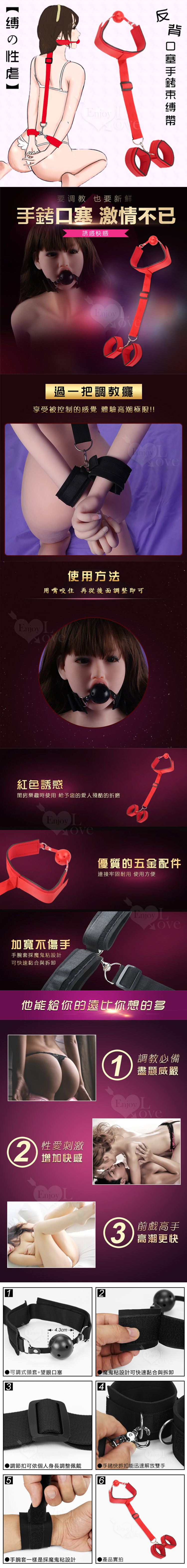 缚の性虐 反背口塞手銬束缚帶 (紅色)