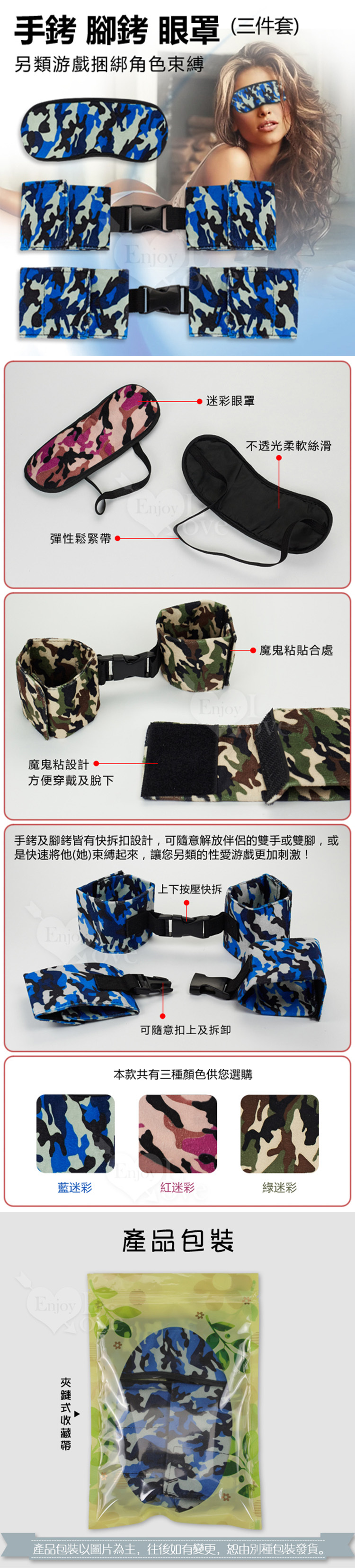 尺碼:手銬:周長18-22公分,寬6.5公分;腳銬:周長22-26公分,寬7公分;眼罩:長16公分,寬6公分