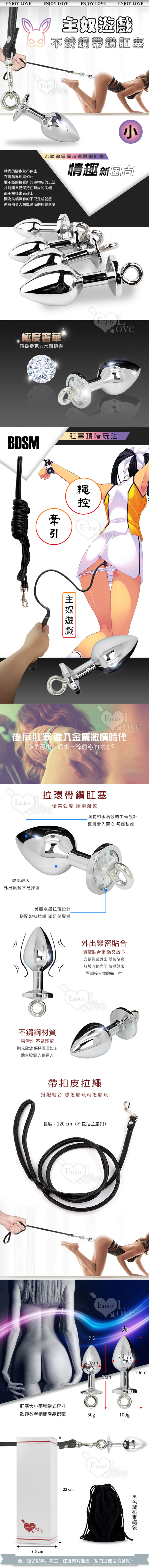 主奴遊戲 不銹鋼金屬帶鑽肛塞+牽引繩 (小/大)