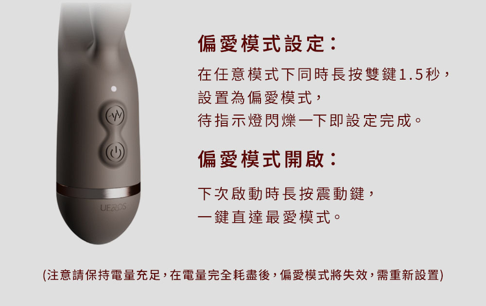 (注意請保持電量充足,在電量完全耗盡後,偏愛模式將失效,需重新設置)