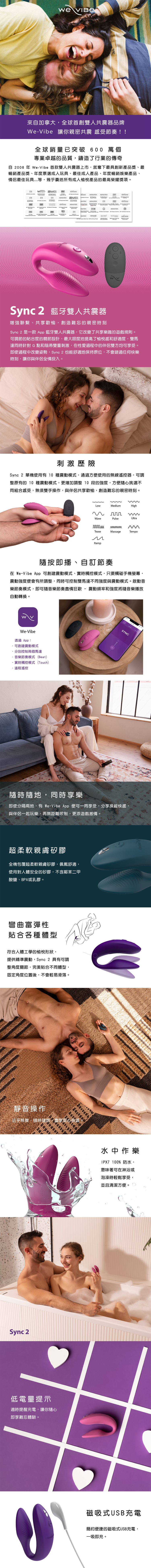 Sync 2 是一款 App 藍牙雙人共震器,它改變了共享樂趣的遊戲規則。可調節的貼合度的關節設計,最大限度地提高了愉悅感和舒適度,雙馬達同時針對 G 點和陰蒂雙重刺激,在性愛過程中的伴侶雙方均可享受。即使過程中改變姿勢,Sync 2 也能舒適地保持原位,不會錯過任何快樂時刻,讓你與伴侶全情投入。
